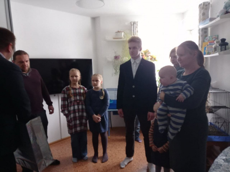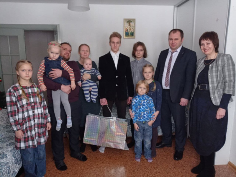 Многодетную семью Чайковского Алексея, старшего электромеханика ЛСС и АУ цеха ГТС Витебского филиала РУП "Белтелеком", с Рождеством и Новым годом поздравили сегодня председатель первичной профсоюзной организации Витебского филиала РУП "Белтелеком" Николай Веников и председатель цеховой организации цеха ГТС Диана Федоренко. В семье Алексея семеро детей. Самому старшему Тимофею 15 лет, посещает секцию карате, Даниил увлекается робототехникой и деревообработкой, дочери Агния и Ника посещают изостудию, кружок "Золотая соломка", кружок бисероплетения "Скарбница", пятилетний Иван посещает изостудию "Палитра", младшие дети в семье - трёхлетняя Ева и четырехмесячный Иван. Желаем этой дружной замечательной семье всех благ! Печать