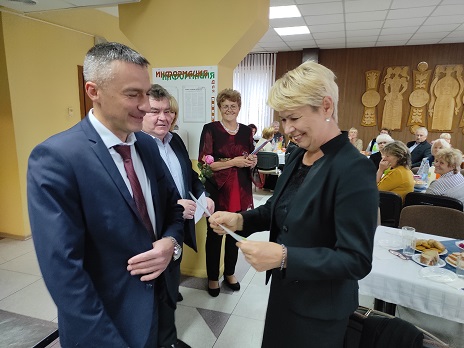 Брестский филиал РУП "Белтелеком" поздравил ветеранов с Днём пожилых людей. С приветственным словом и пожеланиями крепкого здоровья и благополучия обратился к людям осеннего возраста директор филиала Кенда Александр Николаевич. Слова благодарности за активную жизненную позицию прозвучали из уст председателя первичной профсоюзной организации Бойко Василия Васильевича, председателя Совета ветеранов Калиновской Зинаиды Матвеевны и председателя клуба ветеранов "Сударушка" Якушевич Нины Михайловны. Благодарственными письмами и цветами были награждены активисты ветеранского движения. В праздничной программе выступили ветераны филиала, многие из которых дарили присутствующим авторские стихотворения и исполняли всеми известные песни. Конкурсная программа не оставила никого равнодушными: ветераны соревновались в знании литературных произведений, эрудиции, отгадывали осенние загадки и исполняли веселые частушки. Завершилась праздничная встреча теплым общением за чашкой ароматного чая. Спасибо вам, ветераны! Мы Вам желаем всем здоровья И ясных дней, что счастьем хороши! И сохранить до старости глубокой И жизни вкус, и молодость души! Печать