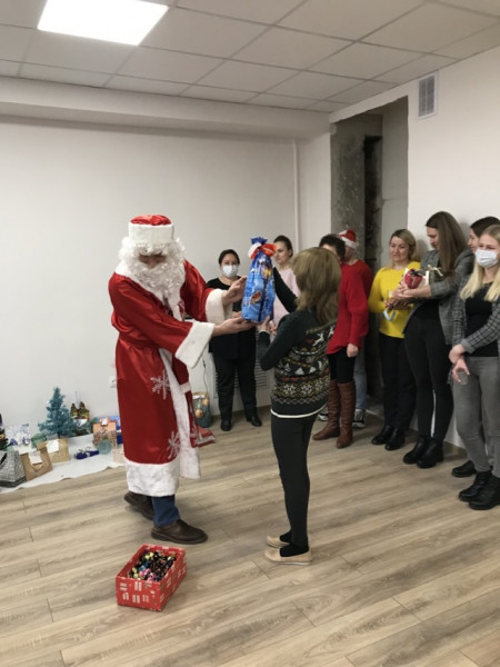 Самый простой способ поздравить друг друга с Новым годом в большом коллективе - это игра «Тайный Санта». Инициатором провести такую игру на производстве «Информационно-расчетный центр» стали председатель цехового комитета Саевец Юлия и заместитель начальника производства Садовская Жанна. Правила игры просты: с помощью жребия для каждого участника назначается персональный друг - тот человек, которому он будет покупать подарок. В день икс все игроки с подарками собираются в одном месте и подарки находят своих новых владельцев. В итоге все счастливы, у каждого есть новогодний подарок и хорошее новогоднее настроение. В игре приняли участие 81 человек! А вручали подписанные подарки как и полагается Дед Мороз и Снегурочка! Печать