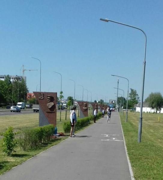 В канун Дня всенародной памяти жертв Великой Отечественной войны представители ветеранской организации Брестского филиала РУП «Белтелеком» во главе с председателем Совета ветеранов Калиновской Зинаидой Матвеевной приняли участие в открытии обновленной мемориальной аллеи "Их именами названы улицы Бреста". Аллея с барельефами знаменитых личностей, чьими именами названы улицы города Бреста, была заложена 50 лет назад. Раньше она размещалась на проспекте Машерова по дороге к мемориальному комплексу «Брестская крепость-герой». Когда магистраль расширяли, стелы с барельефами, нуждающимися в современном оформлении, демонтировали, чтобы установить их в новом месте. Обновленную аллею открыли вблизи мемориального комплекса "Брестская крепость-герой" на улице Зубачева, где установили 13 стел из красного и черного гранита с подсветкой в темное время суток. На них размещено 24 бронзовых барельефа участников первых боев под Брестом летом 1941-го и его освободителей в июле 1944-го, подпольщиков и партизан, деятелей революционного движения в Западной Беларуси, чьи имена увековечены в названиях улиц города — лейтенант Акимочкин, майор Гаврилов, капитан Зубачёв, лейтенант Кижеватов, лейтенант Наганов, полковой комиссар Фомин, капитан Шабловский и лейтенант Рябцев. На стелах можно увидеть изображения Веры Хоружей, Дмитрия Карбышева, Ивана Акимочкина, Сергея Сикорского, Петра Машерова, первого Героя Беларуси Владимира Карвата. Во все времена бессмертной земли помните! К мерцающим звездам ведя корабли, - о погибших помните! Мечту пронесите через года и жизнью наполните!.. Но о тех, кто уже не придет никогда, - заклинаем, - помните! Печать