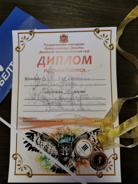 27-28 февраля в г. Орша состоялся турнир по интеллектуальным играм «Кубок малой родины -2021». Интеллектуалы РУП «Белтелеком» не могли обойти это событие стороной и с удовольствием направились в этот славный город попробовать свои силы и интеллектуальные способности. Расписанием были предусмотрены подтурниры: «Командная «Своя игра», «Мозговой штурм», «Музыкальная шкатулка» и «Игра в загадки», проходившая по правилам синхронного турнира «Что? Где? Когда?». Сложность задаваемых вопросов была очень высока, но тем сильнее была радость от нахождения правильного ответа. Заняв в корпоративном зачете в «Командной «Своей игре» 1 место, «Музыкальной шкатулке» 2 место и «Игре в загадки» 3 место, команда РУП «Белтелеком» завоевала итоговое 3 место! Состав сборной: - Тротюк Александр, Брестский филиал РУП «Белтелеком», капитан команды; - Михаил Васильков, Брестский филиал РУП «Белтелеком»; - Сергей Тарновецкий, Брестский филиал РУП «Белтелеком»; - Елена Довжик, Брестский филиал РУП «Белтелеком»; - Мельник Геннадий, головное подразделение РУП «Белтелеком»; - Титов Борис, первичная профсоюзная организация РУП «Белтелеком». Поздравляем ребят и желаем им дальнейших успехов на интеллектуальном поприще. Печать