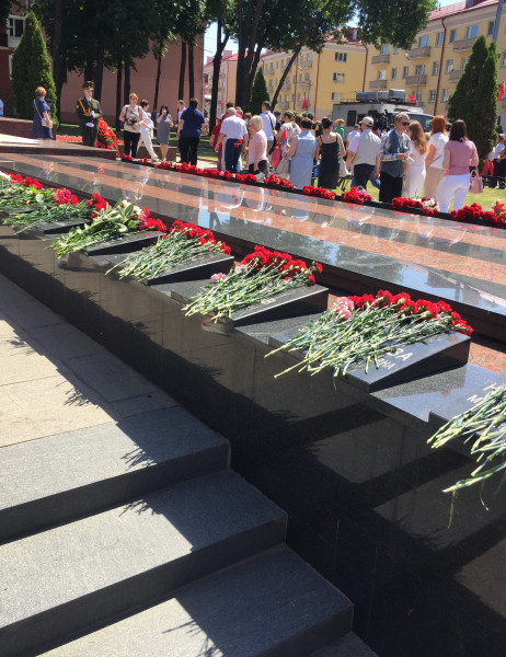 22 июня в 11-40 в Гомеле состоялся митинг-реквием. Он собрал у Вечного огня в центре Гомеля в День всенародной памяти жертв Великой Отечественной войны, сотни людей. В церемонии возложения цветов к мемориалу «Вечный огонь» на площади Труда приняли участие работники Гомельского филиала РУП «Белтелеком». Мы, поколение наследников Великой Победы над фашизмом, живем под мирным небом и несем в сердцах своих эту благодарную память предкам. Печать