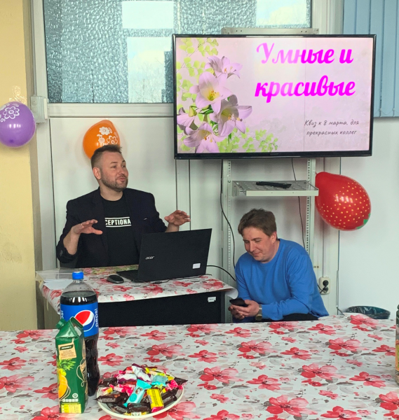 Сильная половина мужчин филиала "Минская городская телефонная сеть" РУП "Белтелеком" поздравила своих коллег с самым красивым и светлым весенним праздником - днем 8 Марта! Каждый коллектив в этот весенний праздник по своему собственному сценарию поздравлял милых женщин. Было сказано много комплиментов, красивых и нежных слов в адрес прекрасной половины, кто-то снял фильм о милых дамах, кто-то посвятил им стихи, кто-то приготовил сладкий стол и устроил чаепитие... , а кто-то устроил мастер класс по прическам воспользовавшись услугами мужчин! Печать