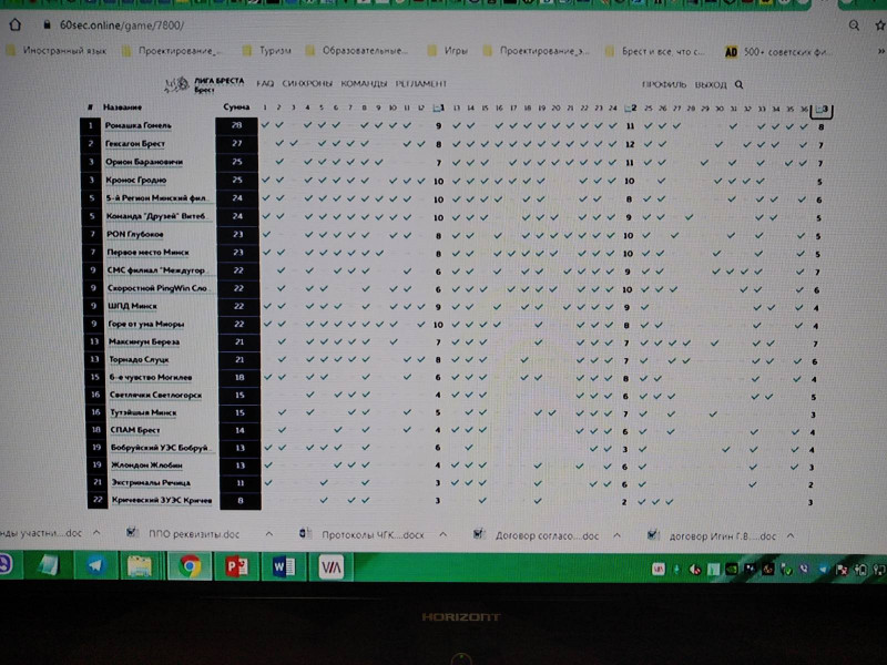 24 сентября в РУП «Белтелеком» состоялась первая Республиканская онлайн-игра «Что? Где? Когда?». Уникальность онлайн-формата состоит в том, что 22 команды со всех структурных подразделений смогли поучаствовать в интеллектуальных баталиях фактически не отходя от рабочего места, ведь собраться они должны были в студиях видеоконференцсвязи своих филиалов или узлов электросвязи. Со вступительным словом и пожеланием удачи командам выступила председатель первичной профсоюзной организации РУП «Белтелеком» Антульская Елена Васильевна. Вопросы задавал известный интеллектуал, организатор лиги «60 секунд» в г. Бресте Геннадий Игин. Было задано 36 вопросов – три блока по 12 вопросов в каждом и после каждого подводились предварительные итоги и давалось несколько минут, чтобы команды могли немного отдохнуть. Наверное, самым знаменательным является то, что этот перечень вопросов составлен для международного турнира «Синхрон-lite. Лига старта. Эпизод XVIII» и игрок каждой команды, отвечавшей на вопросы попадает в мировой рейтинг Международной ассоциации клубов "Что? Где? Когда?". Ведущий задавал вопросы находясь в студии в городе Бресте, а команды со всей Республики, посовещавшись 60 секунд, должны были ввести ответ на специальный сайт посредством любого устройства, подключённого к сети Интернет. Все участники отметили, что вопросы были разносторонними и очень интересными. Битва умов получилась на загляденье, ведь до последнего вопроса не было понятно, кто же одержит победу. Итоги игры: Первое место заняла команда «Ромашка» Гомельского филиала. Второе место с разрывом в один ответ заняла команда «Гексагон» Брестского филиала. А третье место заняла команда «Кронос» Гродненского филиала. Не можем не отметить и команду, лишь по дополнительным показателям занявшую четвертое место – команду «Орион» Барановичского зонального узла электросвязи. В заключительном слове Антульская Елена Васильевна поздравила победителей, а так же выразила уверенность, что такие интеллектуальные турниры станут доброй традицией. Все участники остались довольными проведенным временем и ушли домой с улыбкой, ведь в таких дружеских интеллектуальных играх проигравших не бывает. Печать