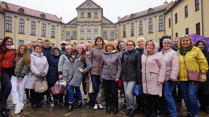 21 сентября 2019 года члены профсоюза филиала «Минская городская телефонная сеть» РУП «Белтелеком» посетили музей под открытым небом – город - легенду Несвиж. Обзорная экскурсия по городу, посещение музея «Ратуша» никого не оставили равнодушными. Резиденция князей Радзивилов поразила всех наших работников своим великолепием. Каменный архитектурный ансамбль был заложен в 1583 году несвижским ординатом князем Радзивиллом Сироткой к югу от старой деревянной крепости. На начальном этапе замок строился по проекту итальянца Джованни Бернардони. На протяжении XVII–XIX столетий он неоднократно перестраивался, вобрав в себя черты архитектуры ренессанса, раннего и позднего барокко, рококо, классицизма, неоготики и модерна. Резиденция Радзивиллов, насчитывавшая 170 помещений, была связана подземными ходами с монастырями города, окружена валами, рвами, четырьмя бастионами и системой прудов, созданных на реке Уше. В замке располагались ценнейшие коллекции декоративно-прикладного искусства, живописи, оружия, нумизматическое собрание, богатая библиотека и знаменитый архив Радзивиллов, в котором хранились документы как по истории рода, так и по внешней и внутренней политике ВКЛ и Речи Посполитой. Парадные залы дворца (Королевский, Гетманский, Золотой, Мраморный, Оружейный, Охотничий) имели неповторимое художественное оформление. Эта прекрасная экскурсия, организованная с помощью «Беларустурист», позволила нам прикоснуться к нашей истории. Печать