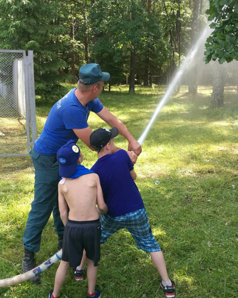 В рамках проведения республиканской акции «Каникулы без дыма и огня!» работники Воложинского горрайотдела по чрезвычайным ситуациям посетили оздоровительный лагерь «Родничок». На встрече спасатели рассказали ребятам и воспитателям об основных источниках опасности в летнее время, чтобы сформировать у них чувство ответственности за безопасное поведение в повседневной жизни. Ребята соревновались в быстроте надевания боевой одежды спасателей и сбивании мячей из ствола водной струей. Спасатели показали технику и обмундирование спасателей. Завершающим аккордом стала подача воды из лафетного ствола, для детей устроили настоящую «водную феерию». Работник МЧС также провел беседу и проинструктировал работников и технический персонал оздоровительного лагеря по соблюдению правил пожарной безопасности. Печать