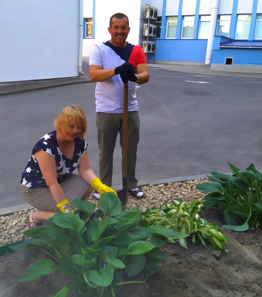Красота спасет мир! Эту всем знакомую фразу можно по праву считать верным спутником деятельности женской половины Брестского филиала РУП «Белтелеком». Женщинам свойственно видеть мир в ярких красках. И где бы не появлялась Женщина – вокруг свет, любовь и благоухание цветов. Стремление к прекрасному не оставило женщин и в юбилейный для нашего предприятия год. Именно к 25-летию образования предприятия совет по работе среди женщин первичной профсоюзной организации Брестского филиала РУП «Белтелеком» объявил проект «Сделаем мир краше!», целью которого явилось благоустройство территории филиала. Все желающие смогли не только предоставить цветы и кустарники, но и принять участие в озеленении участка, собственноручно высадив на нем зеленые насаждения. В проекте приняли активное участие члены совета ветеранов филиала и клуба ветеранов «Сударушка». Яркий цветочный подарок предприятию украсился и красивой кованой лавочкой. И теперь у связистов есть еще одно прекрасное место для отдыха. Любимо нами лето за цветы и свет, Который разливается повсюду, Пейзажные рождаются этюды — Прекрасный отдых от мирских сует! И хочется впитать все запахи в себя, Все краски лета сохранить в картинах, Чтобы в холодных зимних днях рутинных — Согреться ими, словно от огня. Печать