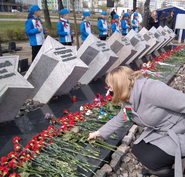 Ко Дню Победы в Великой Отечественной войне, первичная профсоюзная организация филиала «МГТС» РУП «Белтелеком» приняла участие в возложении цветов у мемориала «Память», который расположен на проспекте Дзержинского в Минске, как дань памяти павшим героям. Мемориальный комплекс расположен на месте братской могилы, в которой захоронены 35 советских воинов, погибших при обороне Минска в годы Великой Отечественной войны. Поисковая работа по установлению фамилий солдат была начата еще в 1980 году, но до сегодняшнего дня остаются неизвестными имена еще 24 бойцов. На могиле размещены 11 звезд, на которых вписаны установленные имена погибших воинов, и обелиск памяти 24 неизвестных солдат. Рядом с обелиском и аллеей из звезд установлена скульптурная композиция – образ пожилой женщины, сидящей у памятника, сжав в руках солдатскую пилотку, как символ матерей, не дождавшихся своих сыновей с войны и скорбящих у их могилок. Печать