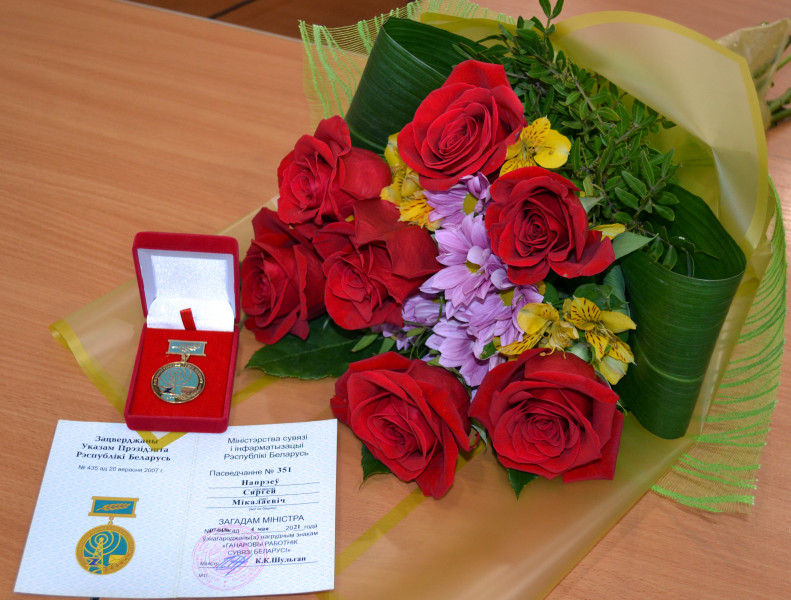 Давайте познакомимся с Сергеем Николаевичем Нупреевым. Сергей Николаевич прошел путь от инженера электросвязи, ведущего инженера электросвязи до начальника цеха. Вся его трудовая деятельность связана с цехом междугородной телефонной и документальной (телеграфной) связи. Много сил и умений отдал повышению качества и надежности работы средств связи, оказанию практической помощи узлам электросвязи. Является наставником молодежи. Пользуется заслуженным авторитетом и уважением в коллективе. Сергей Николаевич сразу после школы в 1975 году поступил в Минский радиотехнический институт. Cвой трудовой путь он начал в 1980 году на Гродненской телеграфно-телефонной станции в должности инженера. Далее служба армии в полку связи. И снова – отрасль связь. 41 год он проработал в отрасли связь. По результатам производственной деятельности награждался Почетными грамотами филиала, Министерства связи и информатизации Республики Беларусь, в 2010 году занесен в Книгу Почета Республиканского унитарного предприятия электросвязи «Белтелеком». Согласно Приказа Министерства связи и информатизации Республики Беларусь № 07-04/8к от 04 мая 2021 года Сергей Николаевич Напреев награжден нагрудным знаком «Ганаровы работнiк сувязi Беларусi». В торжественной обстановке заслуженную награду Сергею Николаевичу Напрееву вручил директор Гродненского филиала РУП «Белтелеком» Виктор Владимирович Матвеев. Поздравляем Сергея Николаевича с достойной наградой! Желаем счастья, здоровья, благополучия, удачи, радости от жизни!!! Печать