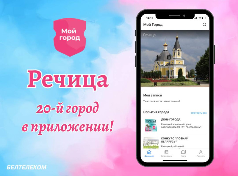 У гэтую суботу, 2 верасня ў горадзе Рэчыцы, Гомельскі філіял РУП "Белтэлекам" прэзентаваў дваццаты горад у краіне і трэці ў Гомельскай вобласці ў мабільным дадатку "Мой горад".