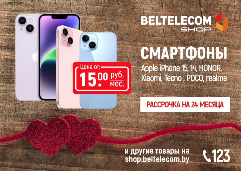 Да Дня ўсіх закаханых смартфоны ў растэрміноўку на 24 месяцы, без першапачатковага ўзносу і пераплат ад кампаніі Белтэлекам
