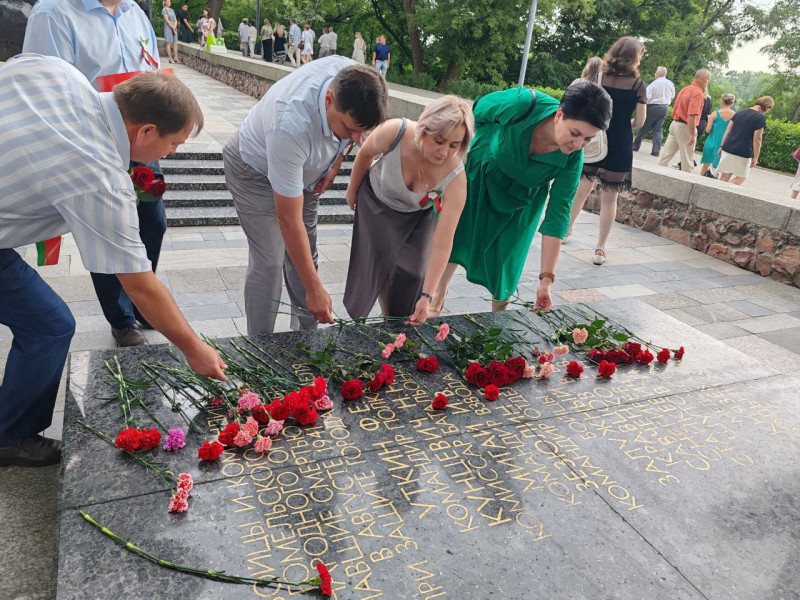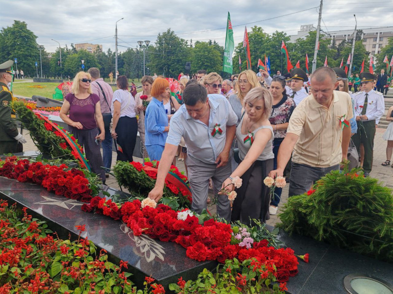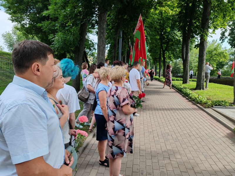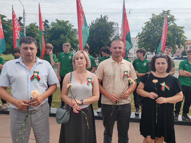 А таксама ўшанавалі памяць загінуўшых герояў і прынялі ўдзел ва ўскладанні кветак на ўрачыстым мітынгу, прысвечаным Дню Незалежнасці Рэспублікі Беларусь і 80-й гадавіне вызвалення ад нямецка-фашысцкіх захопнікаў, які прайшоў на Алеі Герояў і мітынгу ля мемарыяла народным апалчэнцам.