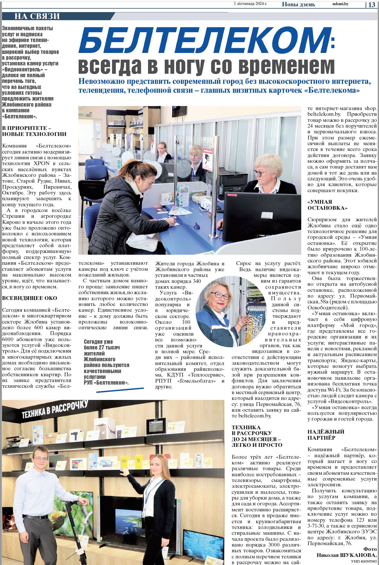 У Жлобінскай раённай газеце "Новы дзень" выйшаў артыкул пра паслугі кампаніі "Белтэлекам", якія прадстаўляюцца жыхарам горада і раёна Жлобінскім занальным вузлом электрасувязі.