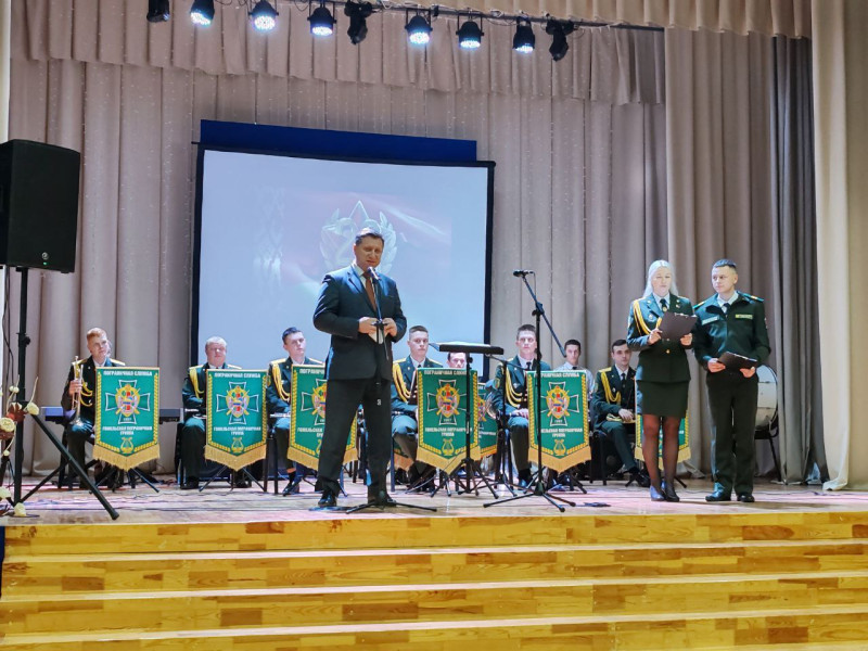 На сцэне выступаў ваенны аркестр Гомельскай пагранічнай групы.