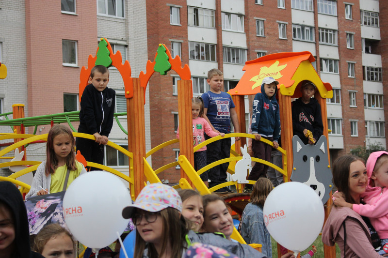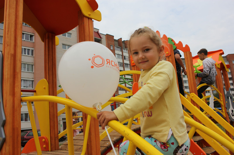 Гродзенскі філіял ужо не першы год праводзіць маштабную рэспубліканскую акцыю "свята нашага двара разам з"ЯСНА"!", у рамках якой абсталюе дзіцячыя пляцоўкі гульнявымі горкамі "ЯСНА" ад "Белтэлекам"у розных гарадах вобласці. Такая ўжо добрая традыцыя-клапаціцца пра жыхароў, асабліва пра дзяцей і дарыць ім радасць і добры настрой. Зрэшты, цікава на свяце было не толькі дзятве, але і ўсім, хто прыйшоў на свята. Дзяўчынкі і хлапчукі спяшаліся сюды разам са сваімі сябрамі, мамамі і татамі, бабулямі і дзядулямі. Не спалохаў іх дождж, які ў хуткім часе спыніўся, і выглянула сонейка.