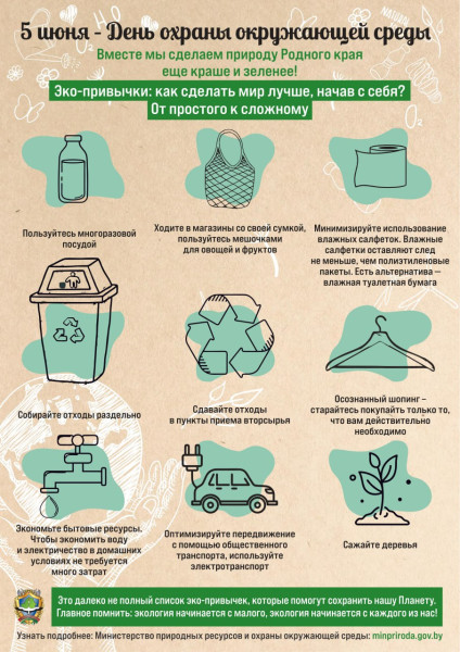 Паважаныя мінчане! У гэты дзень Мінскі гарадскі камітэт прыродных рэсурсаў і аховы навакольнага асяроддзя нагадвае, што клопат аб навакольным асяроддзі і беражлівыя адносіны да прыроды пачынаюцца з учынкаў кожнага канкрэтнага чалавека.