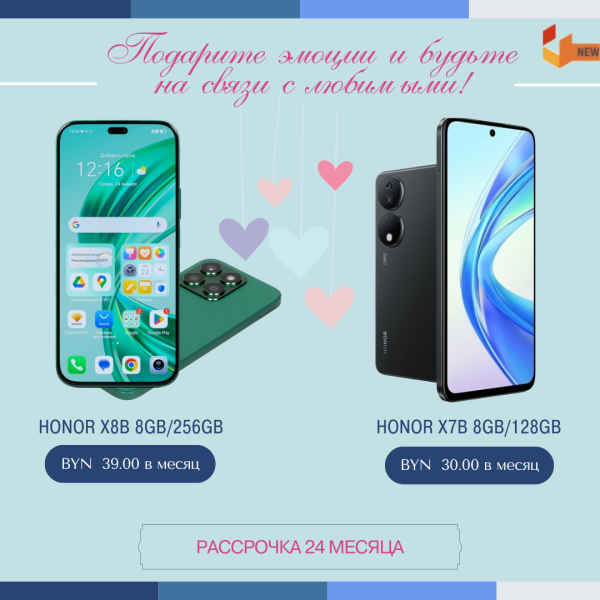 Навінкі ад Xonor: прадстаўляем смартфоны Xonor X7b і Xonor X8b, якія ўжо ёсць у сэрвісных цэнтрах «Белтэлекам» і на shop.beltelecom.by!