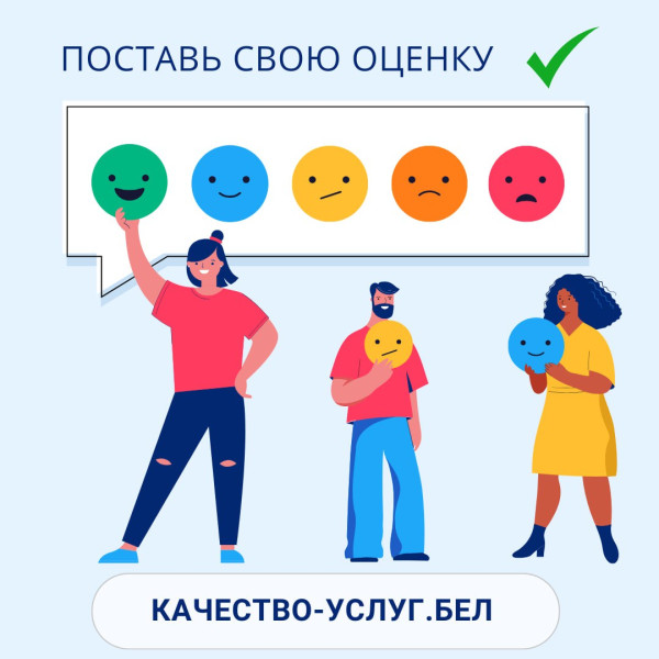 Для ацэнкі якасці неабходна выбраць патрэбную паслугу з прапанаванага пераліку і ўказаць дату прадастаўлення. Далей па пяцібальнай шкале запаўняецца анкета.