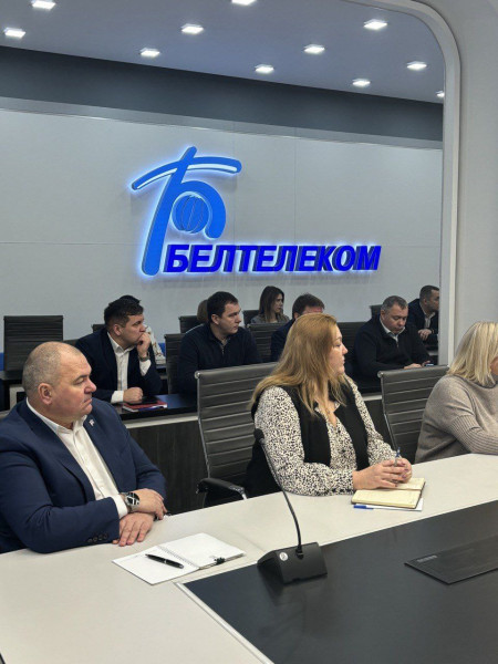 - Яўген Сяменычаў, кіраўнік адміністрацыі Першамайскага района Віцебска абмяркоўваюць з калектывам Віцебскага філіяла "Белтэлекам" галоўную тэму: