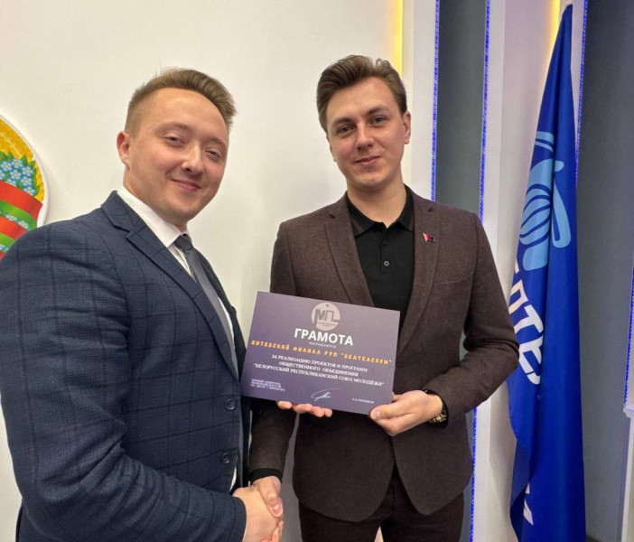 На XVIII Пленуме Першамайскай раённай арганізацыі ГА "БРСМ" Віцебска Віцебскі філіял РУП" Белтэлекам " удастоены: Граматы "За рэалізацыю праектаў і праграм ГА"БРСМ"".