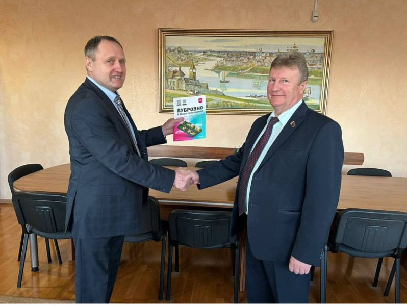На фота старшыня Дубровенскага райвыканкама Анатоль Лукашоў, галоўны спецыяліст Дубровенскага райвыканкама Ганна Гарбачова, начальнік Дубровенскага ўчастка электрасувязі Сяргей Арбузаў, спецыялісты Дубровенскага ўчастка электрасувязі.