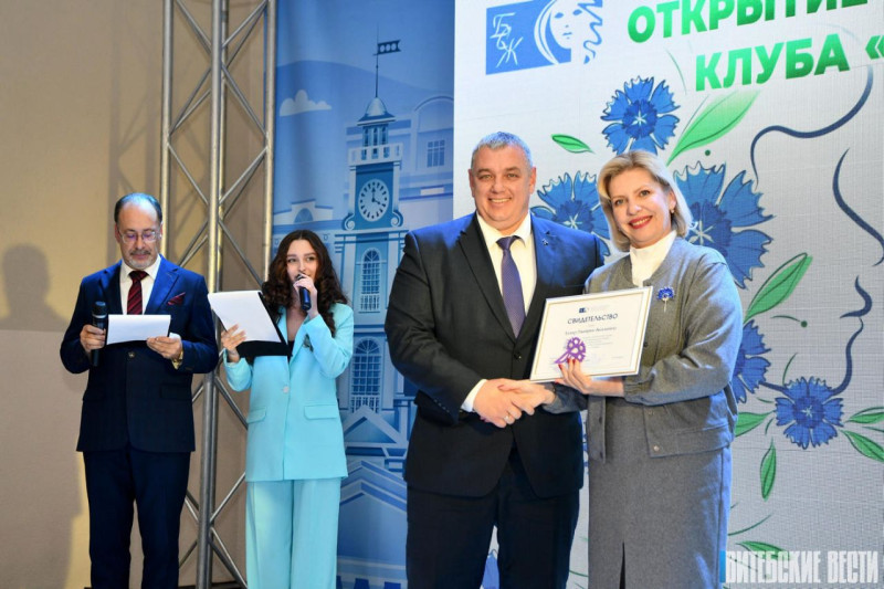 Старшыня Віцебскай абласной арганізацыі Беларускага саюза жанчын Марына Навіцкая ўрачыста ўручыла пасведчанне ганаровага ўдзельніка Віцебскага абласнога клуба " Шчасце" дырэктару Віцебскага філіяла РУП" Белтэлекам " Дзмітрыю Казаку, аднаму з вядомых у вобласці прадстаўнікоў моцнага полу, якія падстаўляюць плячо саюзу жанчын.