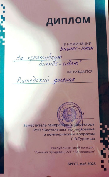 1 месца - у намінацыі Бізнес-план "За крэатыўную бізнес-ідэю".