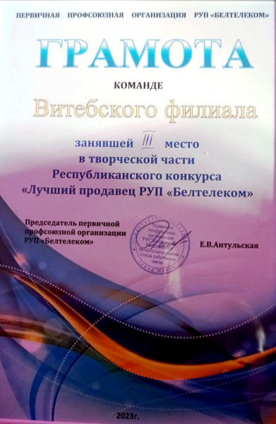 І вось і нашы вынікі на конкурсе " Лепшы прадавец РУП Белтэлекам 2023“: