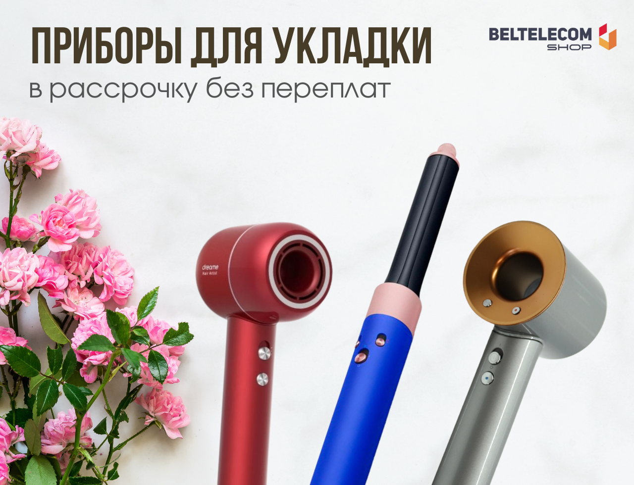 "Белтэлекам" рады паведаміць сваім кліентам аб з'яўленні ў продажы прыбораў для ўкладвання валасоў – фена і стайлера Dyson, а таксама Dreame Hairdryer на выгадных умовах. Цяпер абаненты кампаніі* могуць набыць гэтыя высокатэхналагічныя прылады ў растэрміноўку на 18 месяцаў, каб лёгка і зручна аплаціць іх.