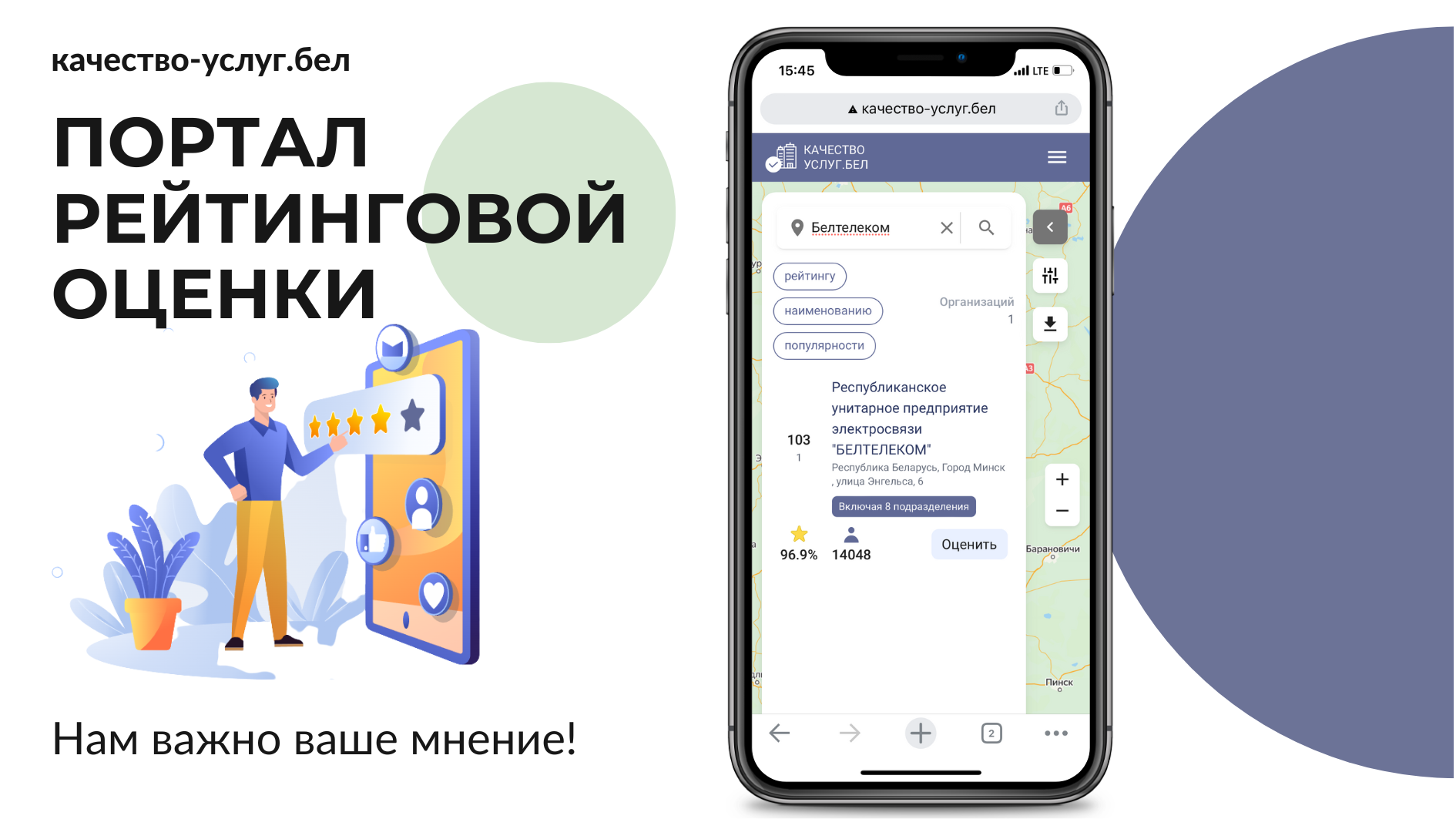 «Белтэлекам» прапануе ацаніць дзейнасць кампаніі на партале рэйтынгавай ацэнкі якасць-паслуг.бел.