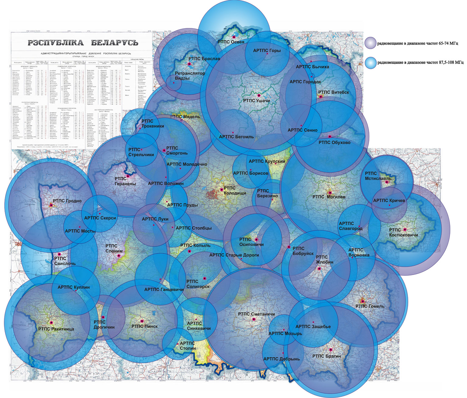 ОбластьПередающая станцияЧастота, МГцРадиус зоны охвата, кмБрестскаяАРТПС Пружаны (Куплин)98,3037БрестскаяРТПС Ракитница70,9159БрестскаяРТПС Ракитница100,0072БрестскаяРТПС Дрогичин (Сиреневка)72,1434БрестскаяАРТПС Ганцевичи98,8039БрестскаяАРТПС Синкевичи105,9038БрестскаяАРТПС Столин104,1024БрестскаяРТПС Пинск (Посеничи)66,3254БрестскаяРТПС Пинск (Посеничи)104,5068ВитебскаяРТПС Браслав69,0854ВитебскаяРТПС Браслав105,7046ВитебскаяАРТПС Видзыэфирная трансляция прекращенаВитебскаяАРТПС Бычиха101,0025ВитебскаяРТПС Витебск70,6763ВитебскаяРТПС Витебск100,5054ВитебскаяРТСП Городок93,805ВитебскаяРТПС Обухово (Орша)67,8560ВитебскаяРТПС Обухово (Орша)107,0054ВитебскаяАРТПС Сенно101,6032ВитебскаяАРТПС Горы100,6034ВитебскаяРТПС Освея103,5056ВитебскаяАРТПС Бегомль104,4035ВитебскаяРТПС Ушачи (Островенец)72,6581ВитебскаяРТПС Ушачи (Островенец)106,7089ГомельскаяРТПС Брагин67,3766ГомельскаяРТПС Брагин103,3072ГомельскаяРТПС Гомель67,7665ГомельскаяРТПС Гомель105,1069ГомельскаяАРТПС Защебье102,0038ГомельскаяАРТПС Вороновка101,9035ГомельскаяРТПС Жлобин69,6847ГомельскаяРТПС Жлобин105,5058ГомельскаяАРТПС Добрынь102,3032ГомельскаяАРТПС Мозырь101,2023ГомельскаяРТПС Сметаничи67,2276ГомельскаяРТПС Сметаничи106,3078ГродненскаяРТПС Геранены72,3260ГродненскаяРТПС Геранены105,8062ГродненскаяАРТПС Луки90,6032ГродненскаяРТПС Гродно66,9865ГродненскаяРТПС Гродно103,0071ГродненскаяАРТПС Мосты105,3025ГродненскаяРТПС Свислочь105,9059ГродненскаяАРТПС Скярси101,9028ГродненскаяРТПС Слоним66,5678ГродненскаяРТПС Слоним106,5074ГродненскаяРТПС Сморгонь67,9754ГродненскаяРТПС Сморгонь103,6043ГродненскаяАРТПС Стрельчики107,0025ГродненскаяАРТПС Трокеники104,5030МинскаяРТПС Копыль102,3056МинскаяАРТПС Пруды106,8032МинскаяАРТПС Столбцы103,2030МинскаяАРТПС Березино70,7926МинскаяАРТПС Березино94,7031МинскаяАРТПС Борисов90,5028МинскаяАРТПС Воложин101,0018МинскаяАРТПС Крупский103,8045МинскаяРТПС Колодищи71,3376МинскаяРТПС Колодищи106,2078МинскаяАРТПС Молодечно (Хожево)96,6029МинскаяРТПС Мядель68,6956МинскаяРТПС Мядель106,4060МинскаяАРТПС Старые Дороги100,6037МинскаяРТПС Солигорск70,2240МинскаяРТПС Солигорск100,3054МогилевскаяРТПС Бобруйск (Ясный Лес)71,4551МогилевскаяРТПС Бобруйск (Ясный Лес)101,6043МогилевскаяРТПС Костюковичи66,4769МогилевскаяРТПС Костюковичи104,7056МогилевскаяАРТПС Славгород103,1033МогилевскаяРТПС Могилев (Полыковичи)72,7478МогилевскаяРТПС Могилев (Полыковичи)105,9076МогилевскаяАРТПС Кричев70,3427МогилевскаяРТПС Мстиславль66,8941МогилевскаяРТПС Мстиславль106,7040МогилевскаяРТПС Осиповичи67,4651МогилевскаяРТПС Осиповичи91,0039БрестскаяАРТПС Дрогичин95,036МогилевскаяАРТПС Кричев95,121Время вещания: в диапазоне 87,5-108МГц - круглосуточно; в диапазоне 66-74МГц с 05:00 до 02:00Зона охвата территории Республики Беларусь радиопрограммой программой "Первый Национальный канал Белорусского радио": Печать