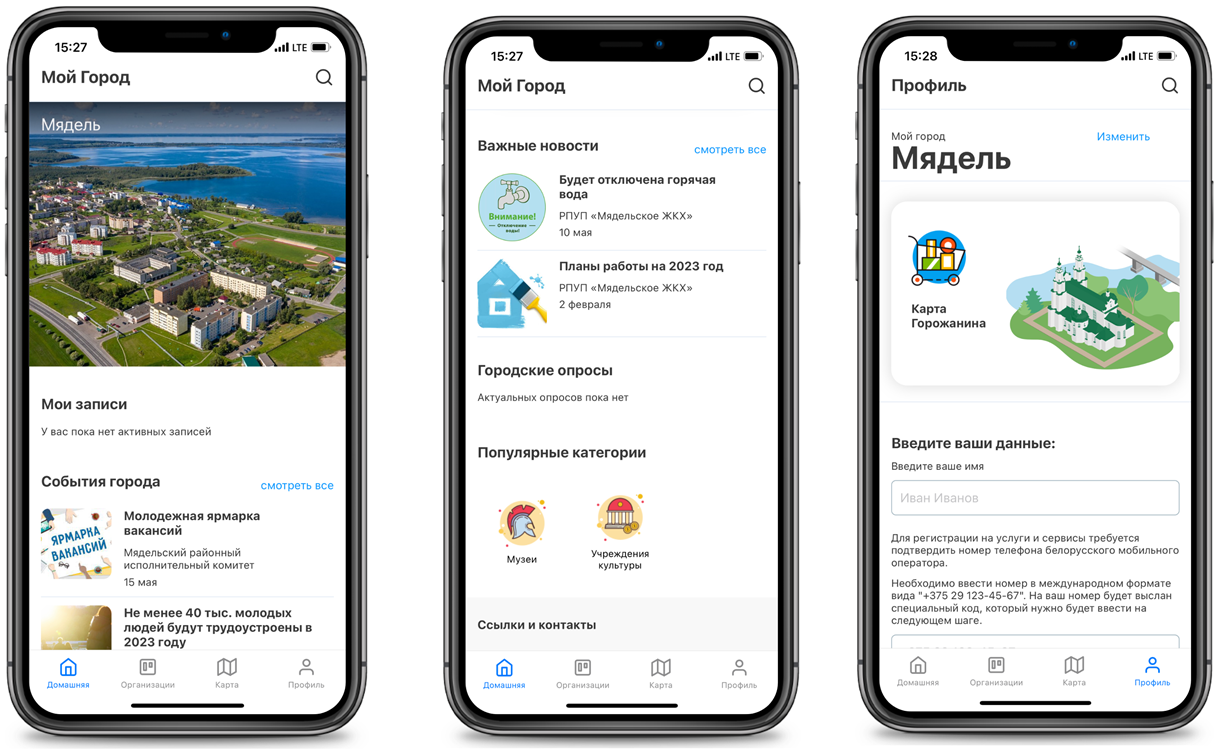 The application “My city (Belarus)” is available for download in the App Store and Google Play. The list of cities connected to the application is presented here.