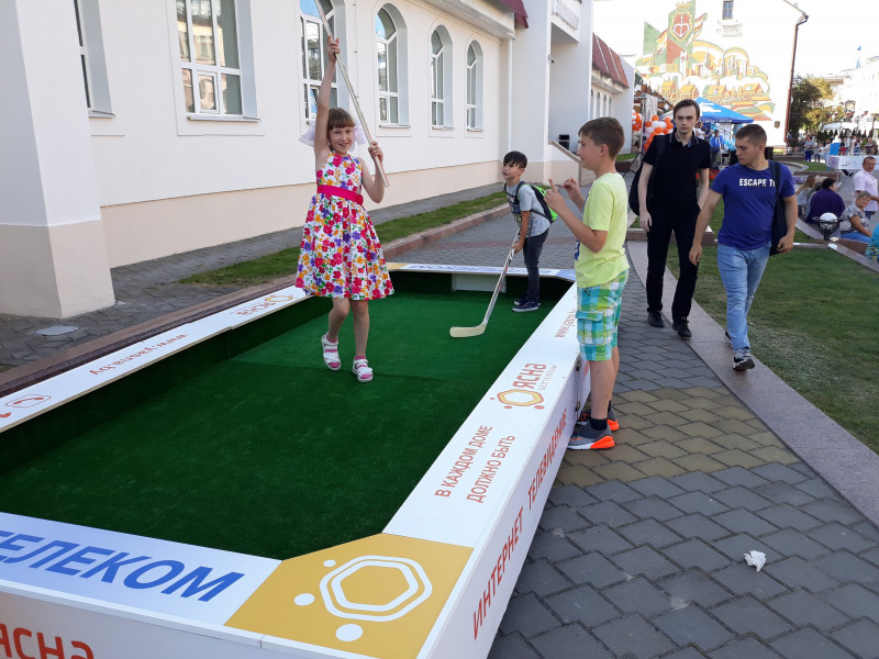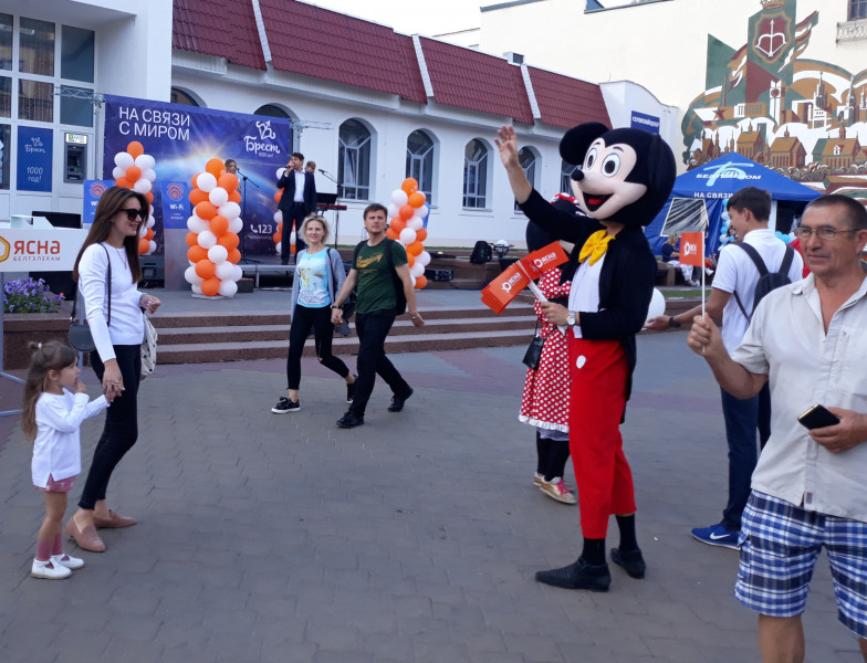 Праздник, подаренный компанией брестчанам, - это различные конкурсы и подарки, выступления молодых музыкантов и фирменные воздушные шары. Малышей ждут веселые аниматоры – Микки Маус со своей подругой, детишек постарше ждут игровые площадки «Хоккей» и «Дуйбол». Юные кокетки могут наложить на щечки аквагрим.