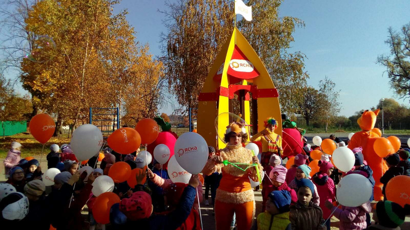 Солнечный октябрьским деньком в городском парке города Столина Брестской области появилась красочная детская горка-ракета «ЯСНА».