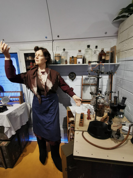Немного пройдя дальше, перед посетителями предстает Зинаида Ермольева. Во время войны именно она совершила прорыв в истории отечественной медицины, найдя первый отечественный пенициллин. Благодаря её открытию, появились антибиотики.