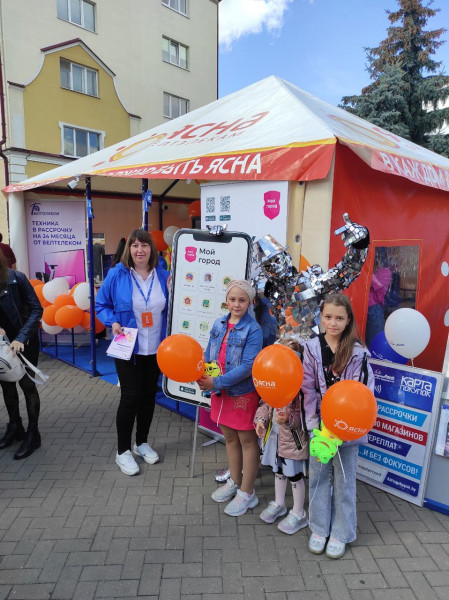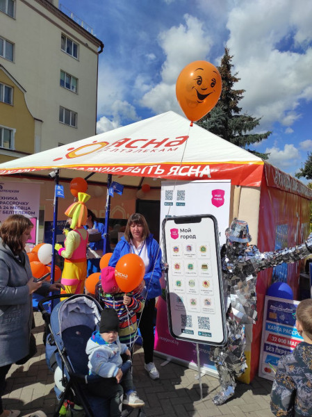 Специалисты филиала вместе со своими помощниками ярким Фиксиком и Зеркальным человеком встречали жителей и гостей города, желающих ознакомиться с работой мобильного приложения «Мой город» и получить консультации по всем услугам РУП "Белтелеком".