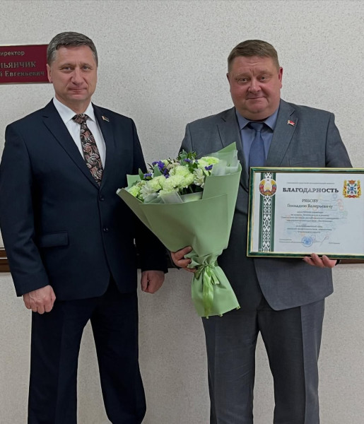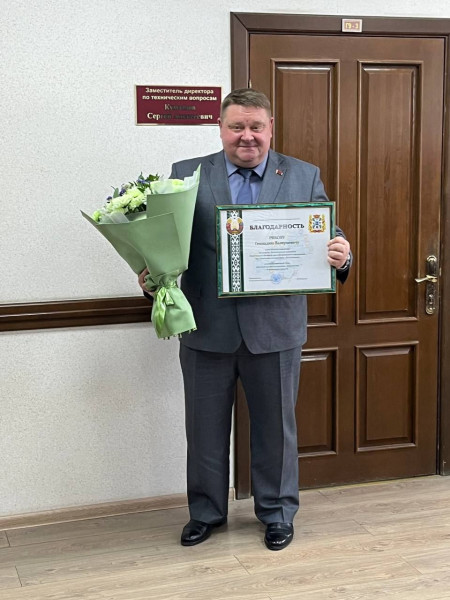Благодарность от Гомельского областного исполнительного комитета вручена заместителю директора по кадрам, безопасности и режиму