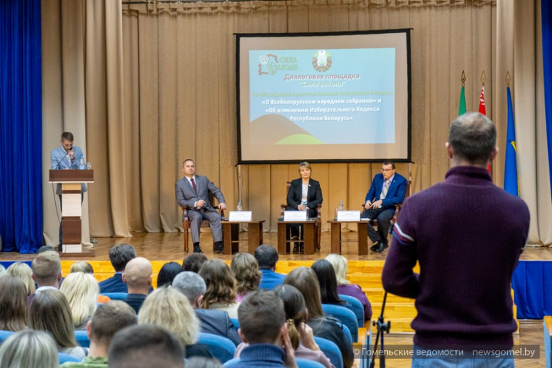 27 октября в 15:00 на базе /Гомельского филиала /РУП "Белтелеком" прошла диалоговая площадка по обсуждению законопроектов. В актовом зале предприятия представители трудовых коллективов города Гомеля собрались, чтобы обсудить проекты Законов Республики Беларусь «О Всебелорусском народном собрании» и  «Об изменении Избирательного кодекса Республики Беларусь», которые  24 октября  этого  года  были  вынесены  на всенародное  общественное обсуждение.  Тексты законопроектов были выложены в открытом доступе для ознакомления  на  правовом  форуме  право.бай. Все желающие  могут с ними ознакомиться, внести свои предложения и замечания.