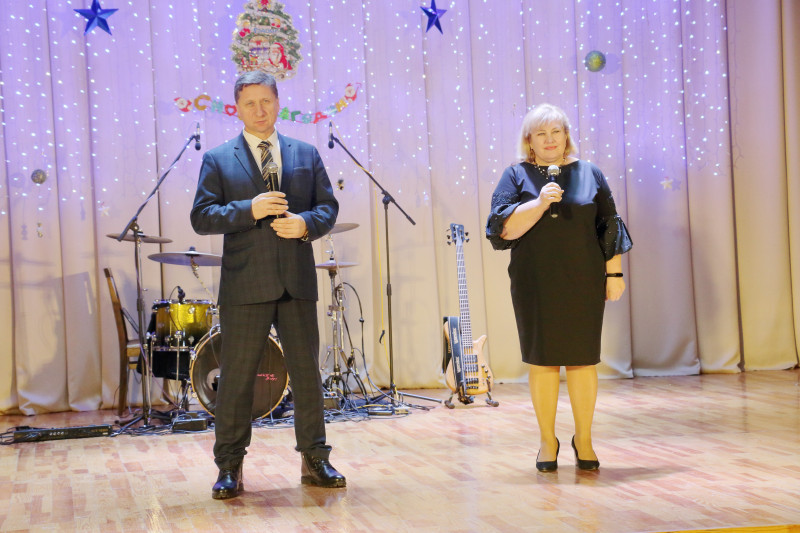 ведущие концерта - Марина Будылина и Николай Соснин (он же Дед Мороз),