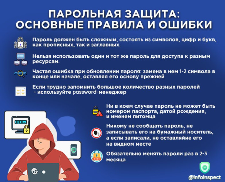 Вот основные правила парольной защиты и ошибки, которые нужно избегать: