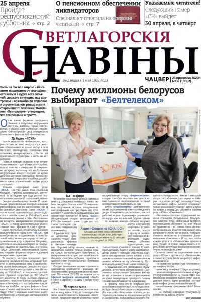 23.04.2020 вышла статья "Почему миллионы белорусов выбирают "Белтелеком" в Светлогорской районной газете "Светлогорские навины". Печать