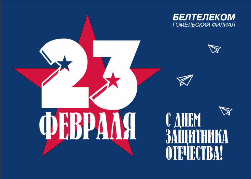 От себя лично и от коллектива Гомельского филиала РУП «Белтелеком» сердечно поздравляю Вас с наступающим праздником - С днем защитника отечества!