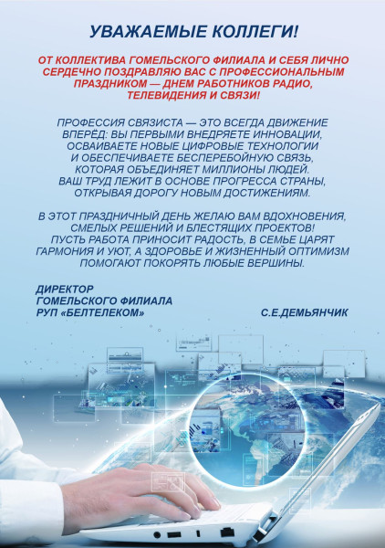 Поздравление директора Гомельского филиала РУП "Белтелеком" с Днем работников радио, телевидения и связи