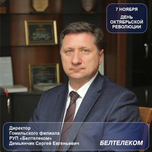 От имени коллектива Гомельского филиала РУП "Белтелеком" сердечно поздравляю вас с Праздником, Днём Октябрьской революции!