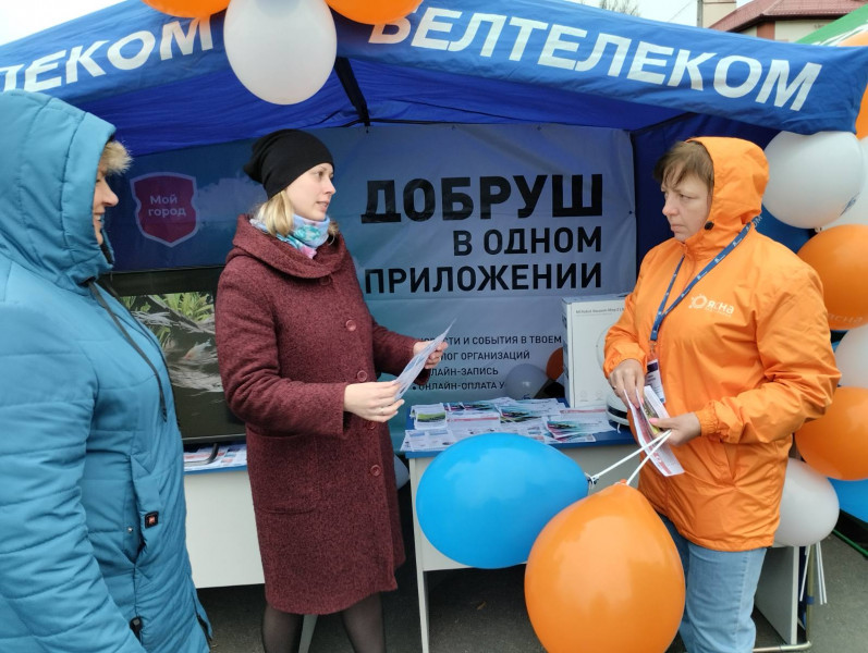 Компания "Белтелеком" с удовольствие присоединилась к празднованию и поздравлениям в адрес хлеборобов. Сотрудники Гомельского филиала «Белтелеком» представили промо-зону приложения "Мой город". У жителей Добруша с сентября месяца есть удобный и комфортный инструмент для коммуникаций с самыми различными сферами городской жизни, от медицины и образования, до покупок и досуга в режиме он-лайн. Многие горожане уже оценили его пользу. Наши специалисты помогали жителям Добруша и района  установить приложение и разобраться с его  возможностями.