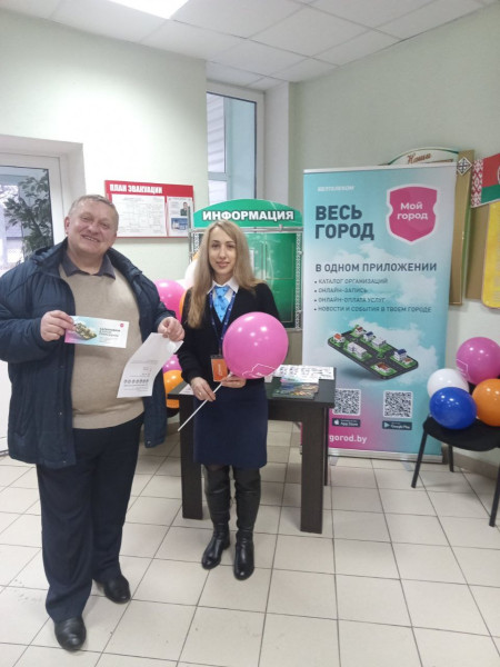 Специалисты продемонстрировали приложение Мой город, которое стартовало в городе в прошлом году. Помогали абонентам скачивать и устанавливать приложение на мобильные устройства, рассказывали про реализацию товаров в рассрочку и другие услуги компании "Белтелеком".