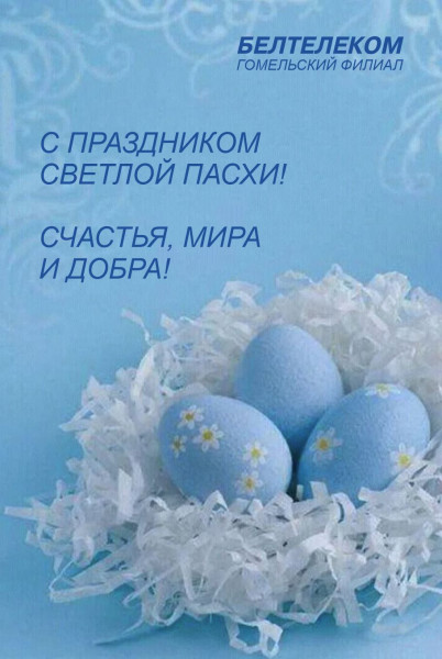 Со Светлым Христовым Воскресением! Желаем, чтобы каждый новый день был наполнен светом, как этот праздник. Пусть воскресший Христос благословит на добро, мир и духовное возрождение!Ваш БЕЛТЕЛЕКОМ! Печать