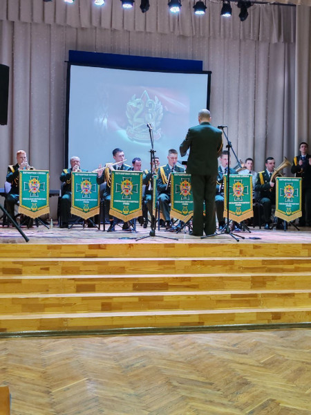 На сцене выступал военный оркестр Гомельский пограничной группы.