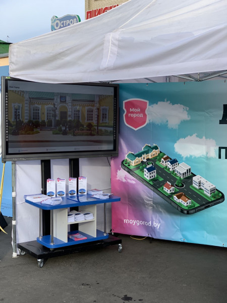 Сотрудники компании, работающие в рамках Дня белорусской письменности на демонстрационной зоне приложения "Мой город", помогают горожанам установить приложение на мобильный девайс, разобраться с его функциями и возможностями.