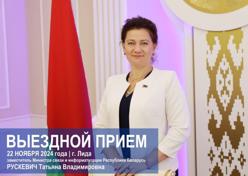 22 ноября 2024 года с 12.00 до 13.00 в Лидском зональном узле электросвязи заместитель Министра связи и информатизации Республики Беларусь Рускевич Татьяна Владимировна проведет выездной прием граждан с одновременным подключением «прямой телефонной линии» | Белтелеком